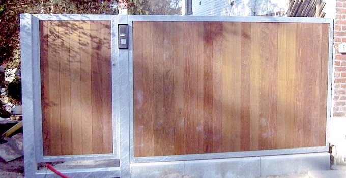 CM45 portillon et panneau fixe...acier galvanisé à chaud et planches de merbaux massif languettées ...